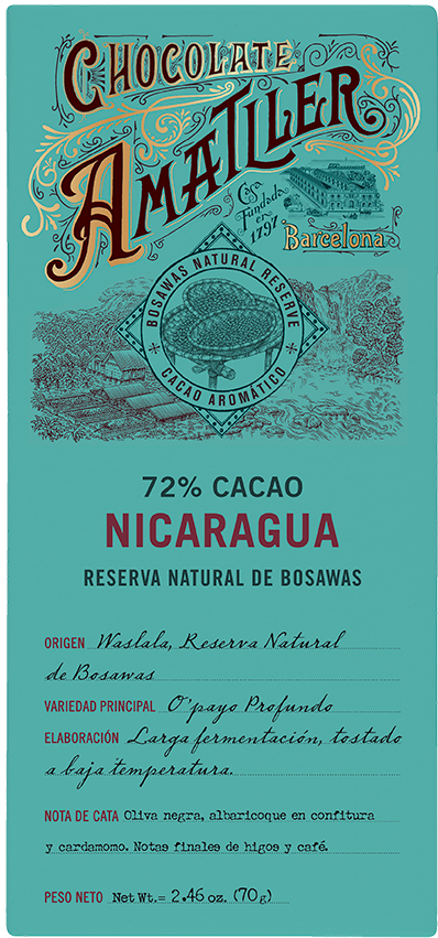 Hořká 72% čokoláda bez lepku. Původ kakaových bobů: Waslala, Reserva natural de Bosawas; Nicaragua. Odrůda: Trinitario a Criollo. Chuťové tóny: černé olivy, meruňkový džem s kardamomem, v závěru tóny fíků a kávy. Tato čokoláda je součástí edice „aromatické kakao“. Byla vyrobena pomocí tradičního procesu, s důrazem na správné pražení a konšování, které zdůrazňuje vůně a chutě. Objevte nekonečné možnosti kakaa.