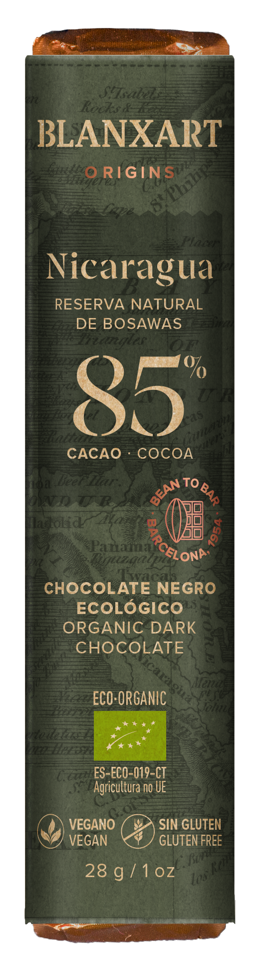 Čokoláda vyrobená "od bobu po tabulku" z kakaových bobů z oblasti Bosawas, Waslala (Nicaragua).