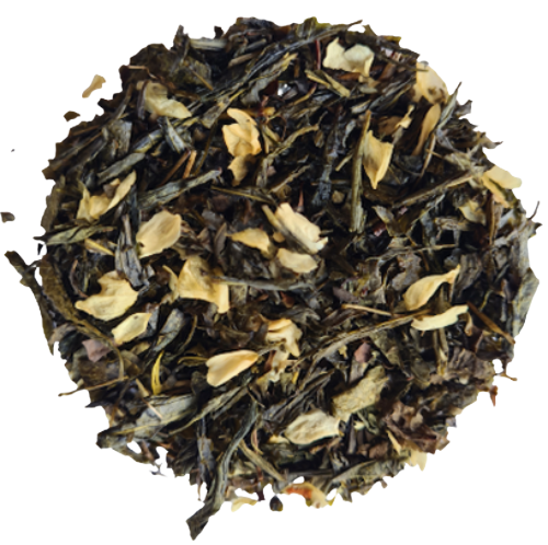 Luxusný jazmínový zelený sypaný čaj z Číny. Druh jazmínových čajov sú najznámejšie vonné čaje v celej Číne. Základ je z kvalitných čínskych čajových lístkov zeleného čaju, ktorý je obohatený luxusným jazmínom.