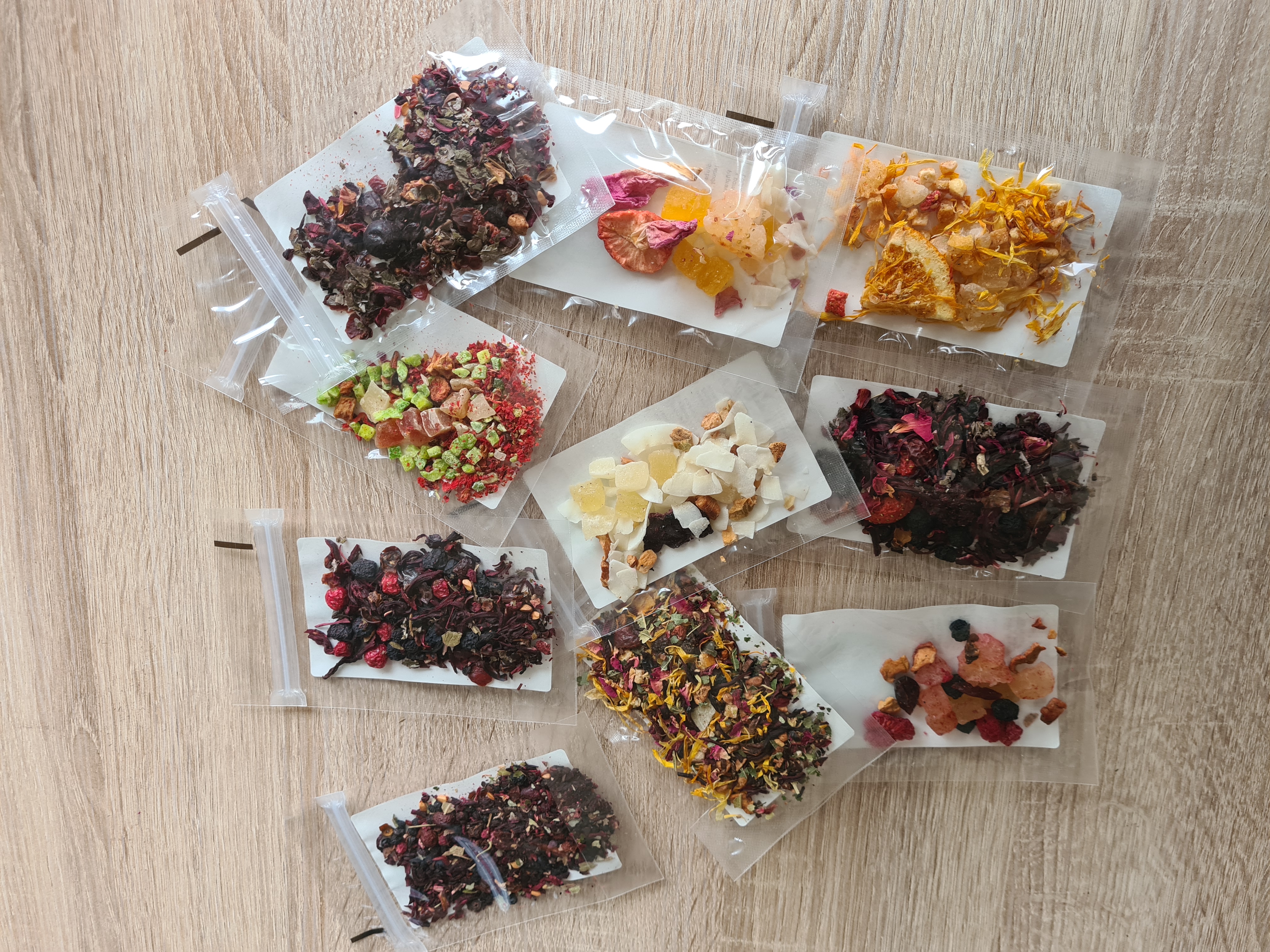 Testovacia sada ovocných čajov s ibištekom a čajov bez ibišteka. Súprava na ochutnávku ovocných čajov obsahuje:Coco Loco, Red Velvet, Lesné plody, Coco Chanel, Mango-Pomaranč-Safran, Ananás-Papaya-Jahoda, Malinove Pokušenie, Nebeská brána, Ovocná záhrada, Ostužinový košík.