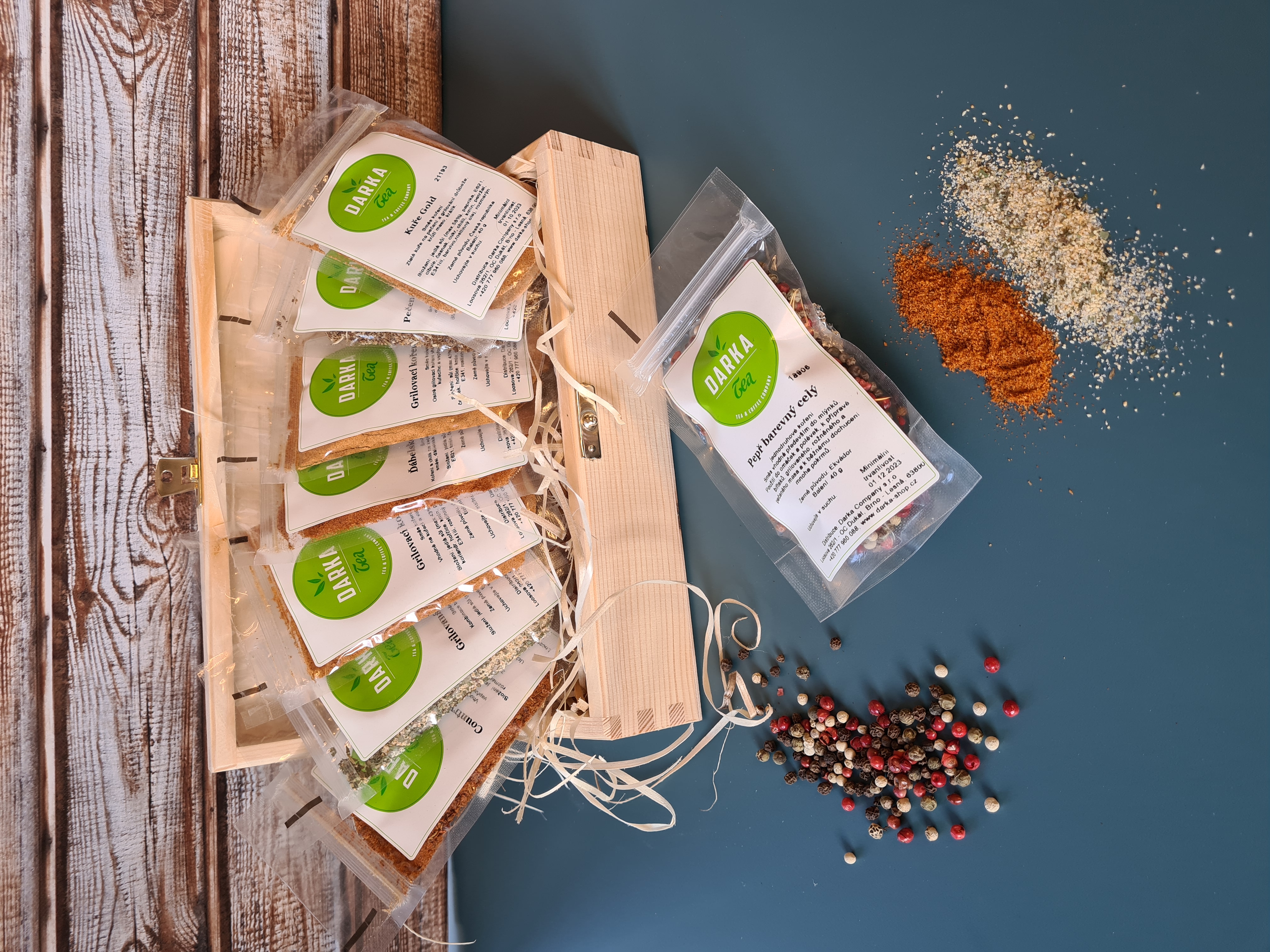 Tento darček môžete použiť ako darčekovú krabičku aj ako darček pre vašu matku, babičku alebo tetu. Drevená darčeková krabička plná kvalitného korenia s vreckami na zips. Vo vnútri nájdete korenie nielen na grilovanie mäsa a zeleniny, ale aj na pečenie.