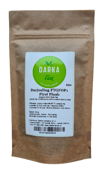 Darjeeling FTGFOP1 First Flush je čierny sypaný čaj, ktorého čajovníky sú pestované v jedinečnej oblasti Darjeeling. Táto oblasť je známa pre svoj veľmi drsný a niekedy neprístupný terén. Sú tu Himaláje, najvyššie vrcholky sveta, ktoré striedajú hlboké údolia. Vďaka tomu je produkcia veľmi malá, iba jedno percento z všetkej indickej produkcie, čo robí čaje z Darjeeling veľmi exkluzívne. Ďalším dôvodom, prečo sú čaje Darjeeling jedny z najcennejších sú čajovníky, ktoré sú používané na výrobu. Okrem indických čajovníkov sa tu bohato pestujú aj čínske čajovníky, ktoré sa aklimatizovali na vysoké výšky. Niektoré kríky môžu byť dokonca hybridy indicko-čínske, čo nikde inde na svete nenájdete. Tieto čajovníky pestované v extrémnych podmienkach vysokých výšok, kde je redšia pôda aj ovzdušie, sú uvádzané do stresového stavu. Tým čajovníky stláčajú do svojich lístkov viac živín a delikátnej chuti. Čaje z oblasti Darjeeling sú potom nielen exkluzívne, ale aj veľmi kvalitné a ich chuť je naozaj výnimočnú a charakteristickú.