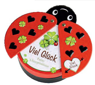Beruška - kovové pouzdro s obsahem plněné mléčné čokolády.