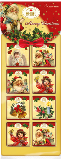 Dárková vánoční kolekce mini tabulkových mléčných čokolád s nostalgickými motivy.
