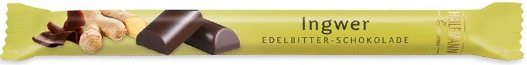 Tyčinka z jemné hořké čokolády se zázvorem.