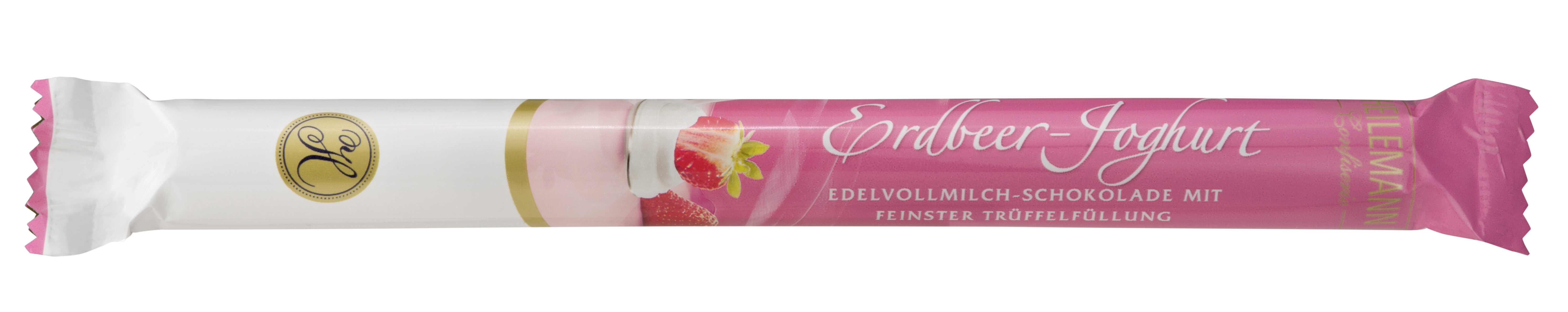 Mléčná čokoláda (minimální podíl kakaové sušiny: 32 %) s jahodovo – jogurtovou náplní (36%).