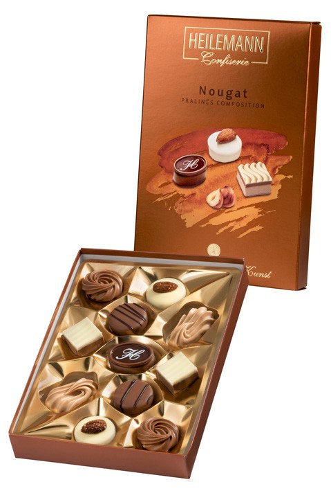 Složení: cukr, kakaové máslo, sušené plnotučné mléko, lískové ořechy (12%), mandle (8,4%), kakaová hmota, čistý máselný tuk, sušená smetana, emulgátory: sójový lecitin, slunečnicový lecitin; odstředěné sušené mléko, máselný tuk, karamelový sirup, prostředek: arabská guma; glukózový sirup, přírodní barvivo dekoru: titanová běloba; odtučněný kakaový prášek, přírodní vanilkové aroma. Možné stopy: skořápkové plody, lepek, vejce. Nutriční hodnoty ve 100g: energetická hodnota 2407 kJ / 578 kcal, tuky 39g (z toho nasycené mastné kyseliny 15g), sacharidy 48g (z toho cukr 47g), bílkoviny 7,6g, sůl 0,13g. Uchovejte v suchu a chladu. Vyrobeno v Německu.