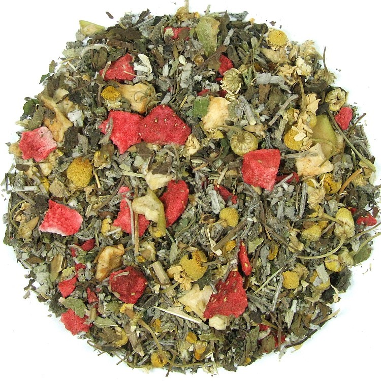 Zloženie: Šalviový list, harmanček, mäta pieporná, medovka, jablko kúsky, jahody lyofilizované.