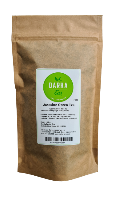 Kvalitný jazmínový zelený sypaný čaj z Číny. Druh jazmínových čajov sú najznámejšie vonné čaje v celej Číne . Základ je z kvalitných čínskych čajových lístkov zeleného čaju, ktorý je obohatený luxusným jazmínom. Výsledkom je potom lahodná a delikátna, jemne sladká chuť a vysoko voňavá aróma.