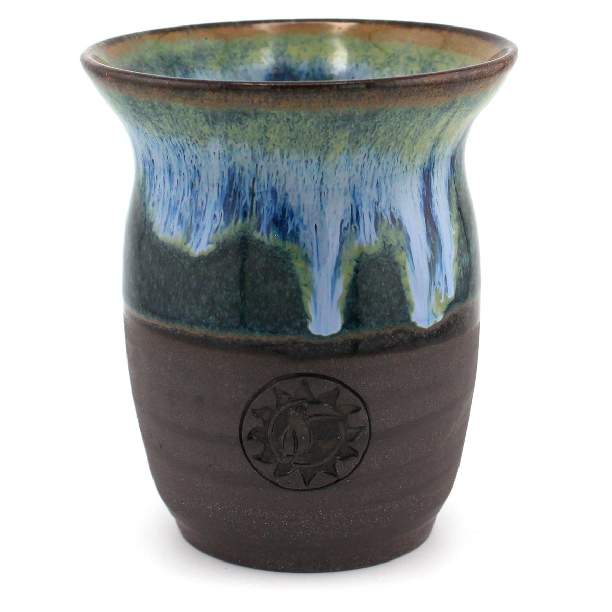 Ojedinělá kalabasa na prípravu tradičného nápoja Yerba maté. Kalabasa Tok rieky s glazúrovanými detailmi. Exotická kalabasa na prípravu povzbudivého nápoja Maté.
