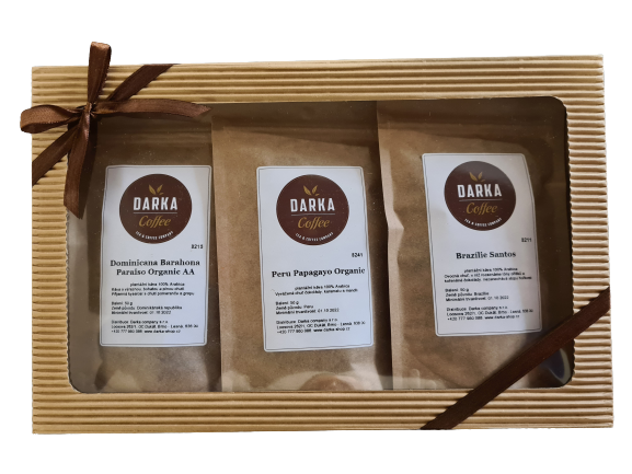 Zloženie: Brazílie Cerrado Doce Diamantina 50 g, Kostarika La Pastora Tarazzu SHB 50 g, Columbie Supremo EP scr.17+ 50 g, Cuba Serrano Lavado Superior 50 g, Dominicana Barahona Paraiso Organic AA 50 g, Mexico Maragogype Mayor Chiapas 50 g, Papua New Guinea Korofeigu Goroka Organic 50 g, Peru Papagayo Organic 50 g.