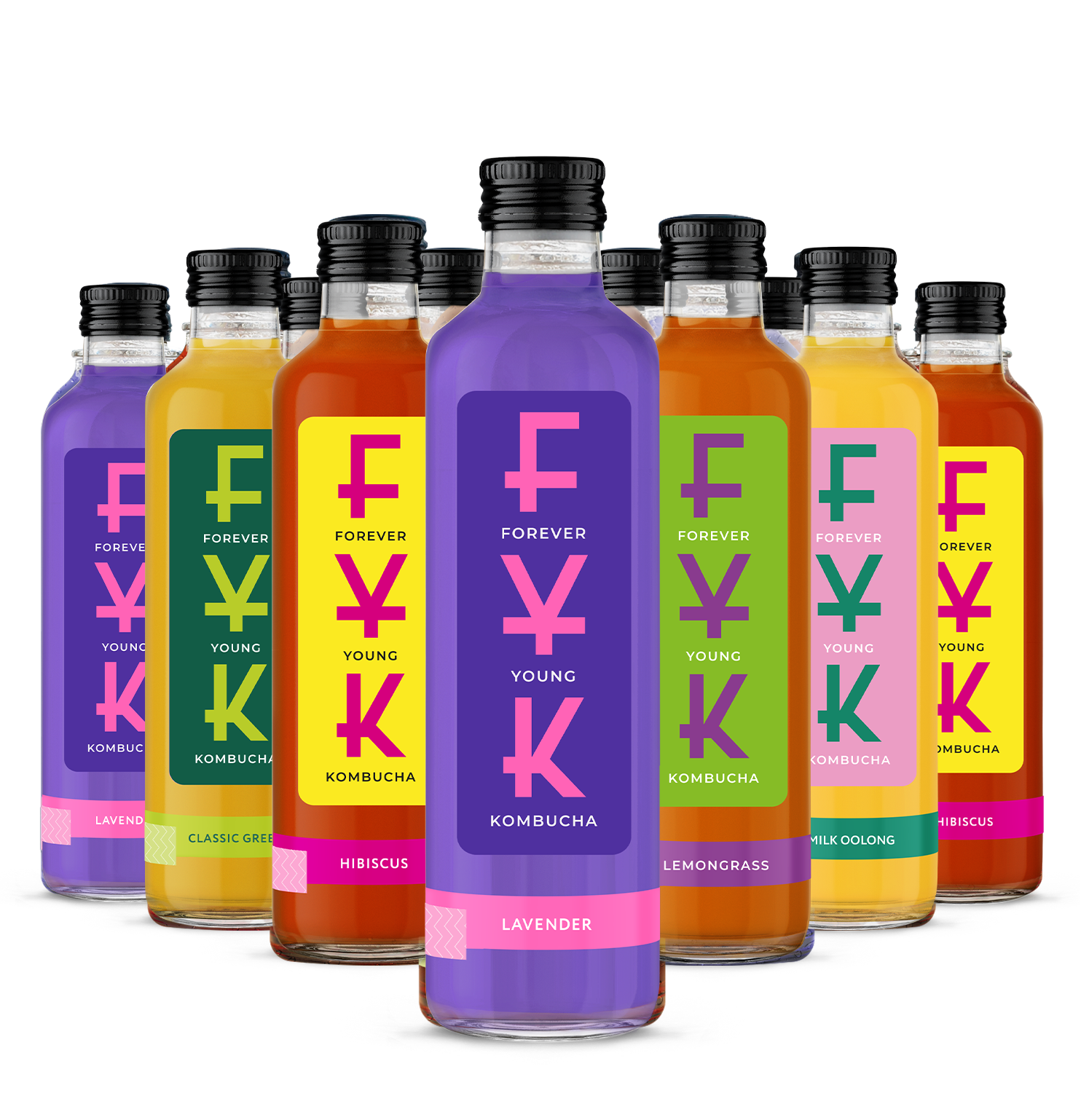 Kombucha MIX 12ks - 2x Kombucha Levanduľa, 2x Kombucha Citrónová tráva, 2x Kombucha Jazmín, 2x Kombucha Ibištek, 2x Kombucha Milk Oolong, 1x Kombucha Zelený čaj, 1x Kombucha Ginger.