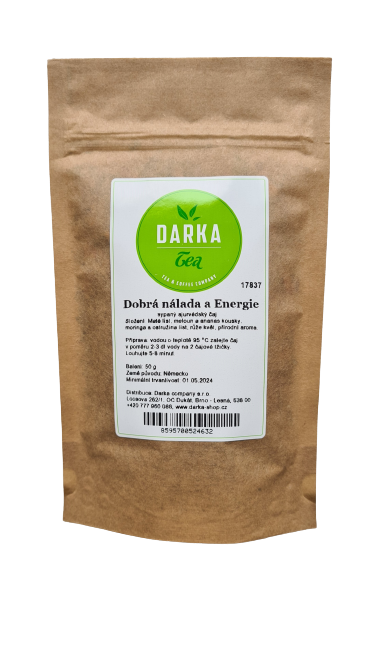 Ajurvédsky bylinkový čaj na nabitie energie a sily s kúskami melónu, ananásu a listov moringy. Dobrá nálada a Energia je vynikajúci antioxidant. Čaj Darka Tea na dobrú náladu. Odporúčame!