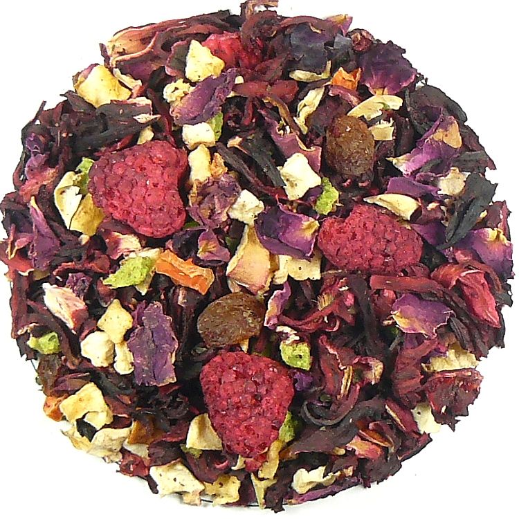 Zloženie: Ibištek kvet, jablko kúsky, citrón kúsky, hrozienka, červená repa, lyofilizované maliny, mäta, mrkva kúsky, okvetné lístky ruží, prírodná aróma.