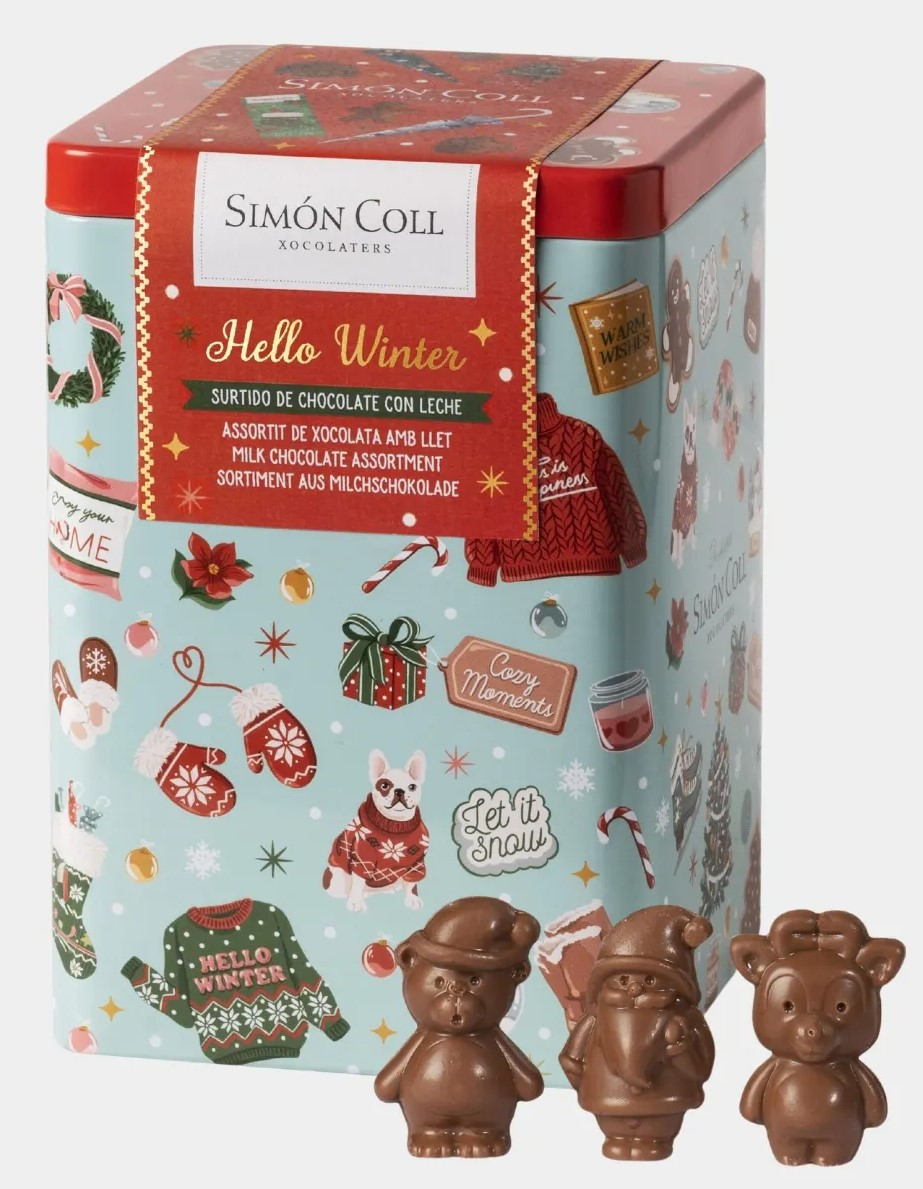 Přineste si domů vánoční kouzlo s naší plechovkou z kolekce Hello Winter, která je zdobena svátečními barvami a okouzlujícími zimními ilustracemi. Uvnitř čeká lahodná směs: šest dutých 3D figurek z mléčné čokolády (každá o hmotnosti 9 g), dva vánoční čokoládové deštníky (každý o hmotnosti 15 g) a dvě čokoládové tyčinky Hello Winter – ideální pro sdílení nebo kdykoli si ji vychutnat! Tato sběratelská plechovka je více než jen pochoutkou, dodá každému prostoru nádech svátečního kouzla.